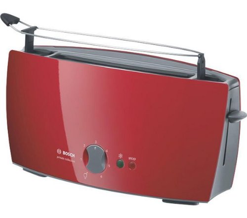 Grillé ou doré... le grille-pain TAT 6004 de Bosch se pliera aux exigences de chacun. Issu de la gamme Private Collection, ce grille-pain rouge et gris propose un sélecteur rotatif avec 6 positions de réchauffe.De plus, le TAT 6004 possède une fonction décongélation et un support viennoiseries pour répondre à tous vos besoins.Intégrant un tiroir ramasse-miettes et un logement cordon, le grille-pain TAT 6004 est d'une simplicité à toute épreuve.