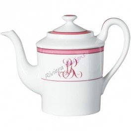 Cafetière de chez Raynaud, maison de porcelaine française de renommée internationale.Forme : MENTON EMPIREDécor : TROPIC ROSE MONOGRAMME fait main,